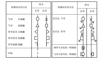 <span style="font-size:16px;"> 橫坐標(biāo)代表頻率,以倍頻程為單位分隔——請(qǐng)記住倍頻程的概念,它指兩個(gè)頻率間的間隔,高頻是相鄰低頻的兩倍;縱坐標(biāo)代表強(qiáng)度。右耳氣導(dǎo)用紅色“O”標(biāo)記,左耳用藍(lán)色“X”標(biāo)記,閾值就是頻率與強(qiáng)度的交叉點(diǎn)位置。比如某人左耳在250Hz處的聽閾是30dBHL,則在250Hz這一軸線上30dBHL中點(diǎn)劃一藍(lán)叉。30dBHL是聽閾,正常人的聽閾是-10dBHL~25dBHL,也就是說,這個(gè)人的聽力損失(也可稱做聽敏度下降)只有5dBHL。</span></p><center><img src="/upfiles/20181015013344992.png" alt="" /><br /></center><p></p><p style="text-align: center;"><span style="font-size:14px;">國家統(tǒng)一聽力標(biāo)記符號(hào)</span></p><p><span style="font-size:16px;"> 用聽力圖表示聽閾級(jí)時(shí),應(yīng)采用上表所給符號(hào),對(duì)氣導(dǎo)相鄰點(diǎn)用直線連接,骨導(dǎo)用虛線連接。如在聽力計(jì)最大輸出級(jí)仍無反應(yīng),可在相應(yīng)符號(hào)處垂直向下畫一箭頭,或在符號(hào)的下外角與垂直方約成45°角向下畫圖一箭頭(即左耳符號(hào)箭頭向右,右耳符號(hào)箭頭向左)。無反應(yīng)的符號(hào)記在聽力圖上代表聽力計(jì)最大輸出的聽力級(jí)處。如用彩色筆記錄,右耳符號(hào)和連線為紅色,左耳符號(hào)與連線為藍(lán)色。從篩選測聽法得出的結(jié)果應(yīng)清楚地照此表示出來。</span></p><p><span style="font-size:16px;"> 更多詳情請(qǐng)登錄www.ziputi.cn</span></p>" />